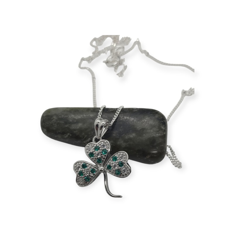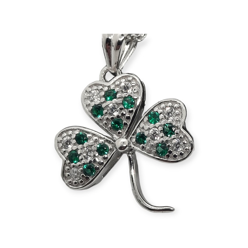 • Product Code: Shamrock Pendant Necklace with Green CZ