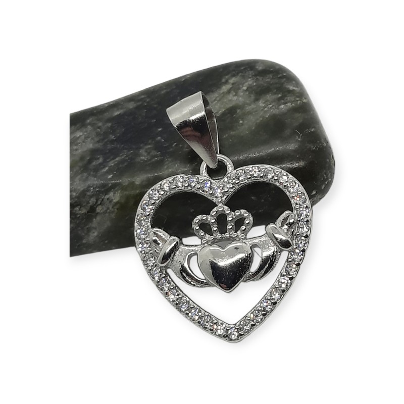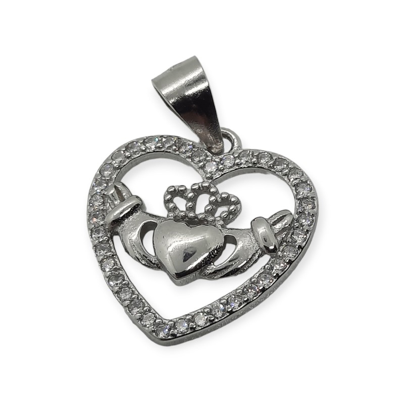 A lovely Heart Shaped Claddagh Pendant made from Sterling Silver - it is the classic Claddagh with White CZ highlights giving it a discreet sparkle.