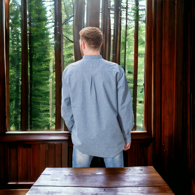 • Product Code: Grandfather Shirt - Blue White Pinstripe - VR25