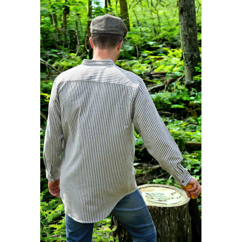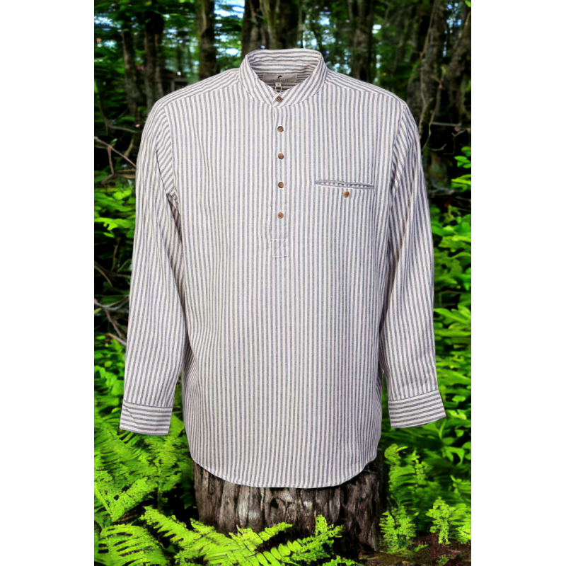 Cotton Grandfather Shirt - Blue with Cream Stripe - Made in Ireland