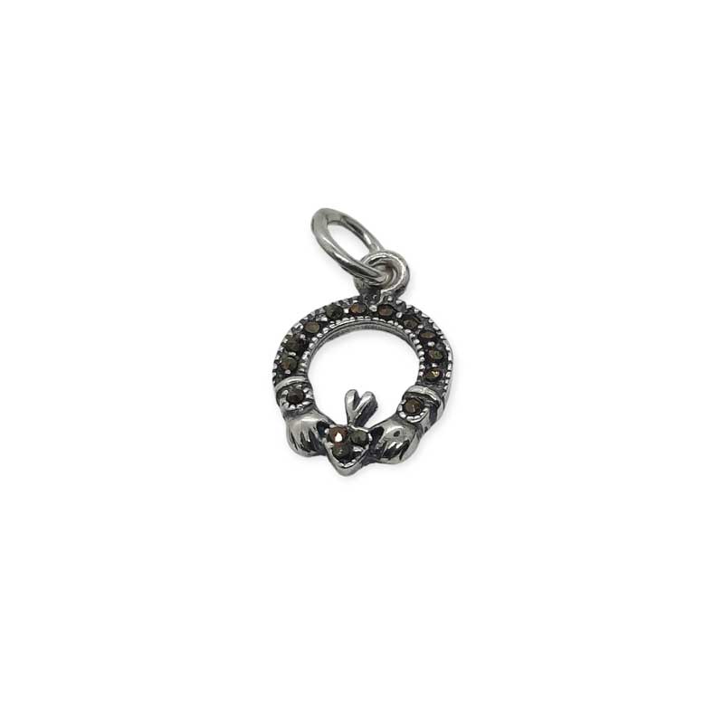 Small Silver Claddagh Pendant with Marcasite