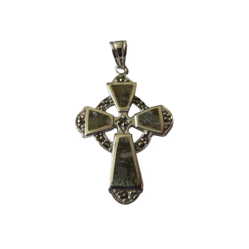 - Product Code: Silver Celtic Cross with Connemara Marble Marcasite CC8