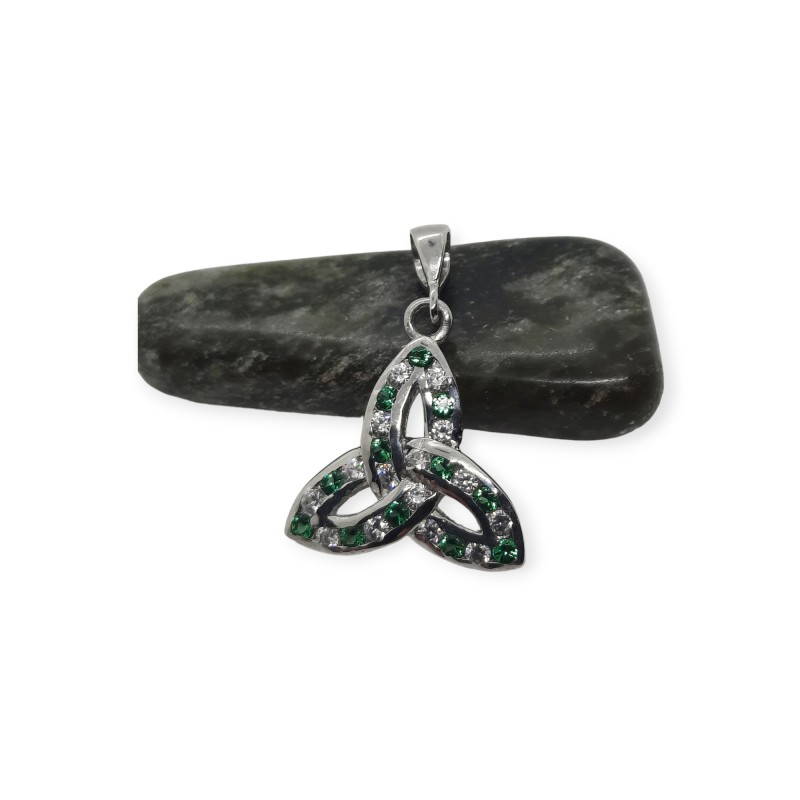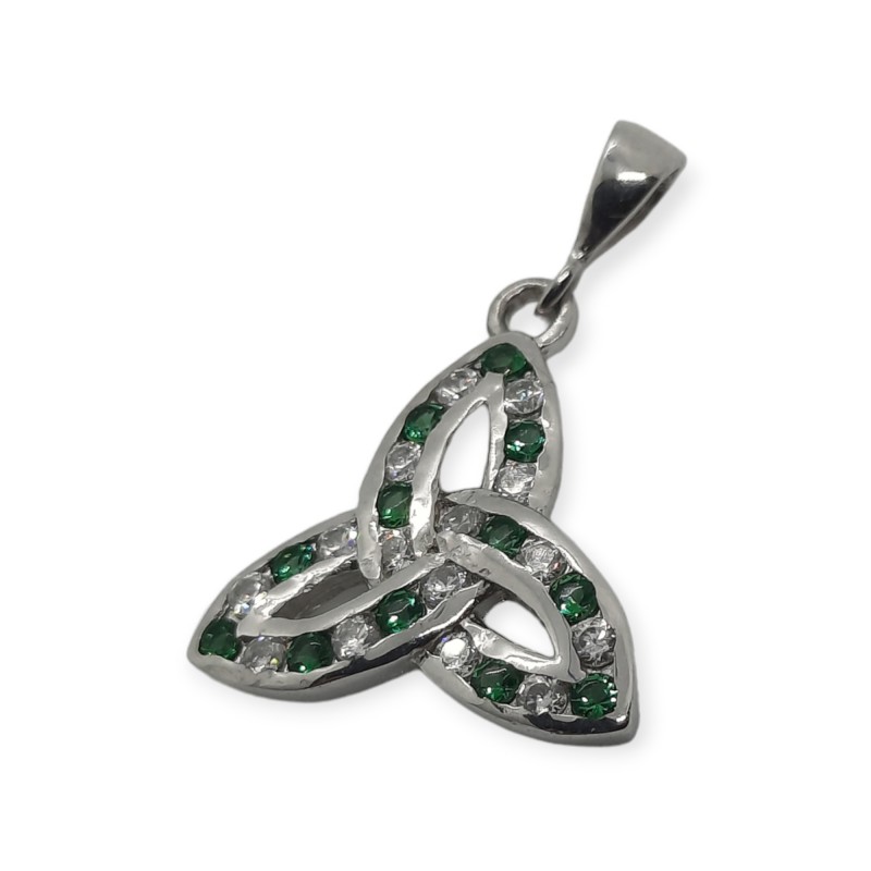 - Product Code: Silver Trinity Knot Pendant with Green Stones - SP0023