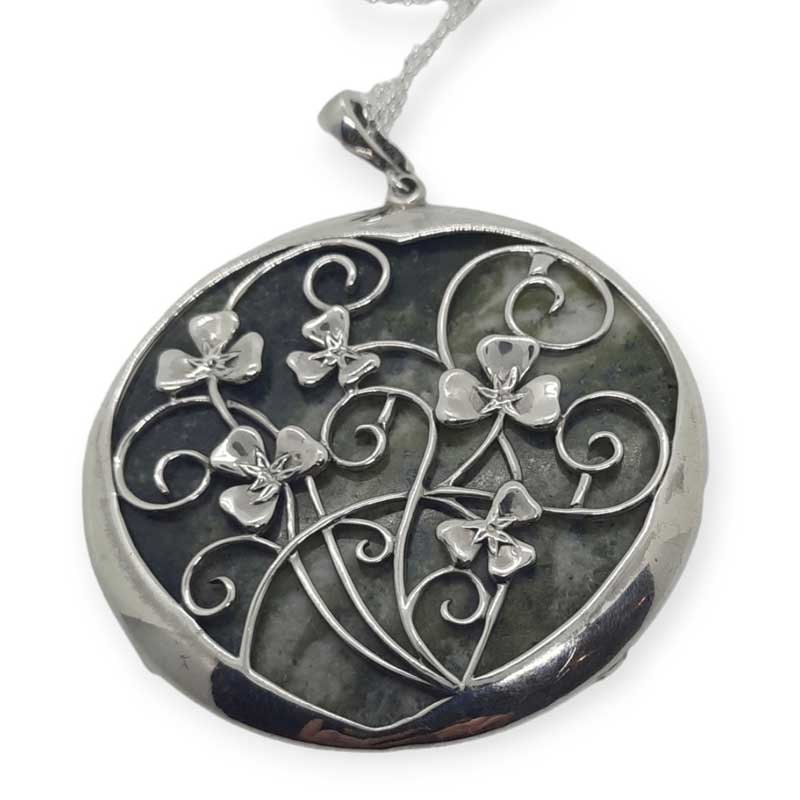 - Product Code: Large Connemara Marble Shamrock Pendant - Silver JCW