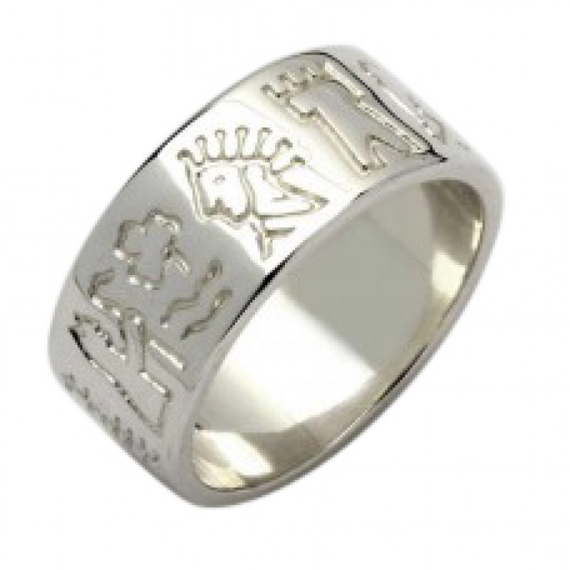 A Silver Impressions of Ireland ring made in Ireland by Fado Jewelry. The ring illustrates many important parts of Irish History and Culture and is a great to the people of long ago.