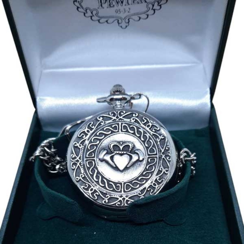 Mechanical Pocket Watch - Claddagh - Mullingar Pewter