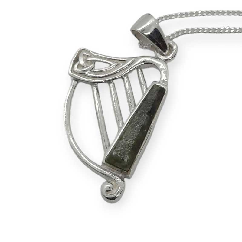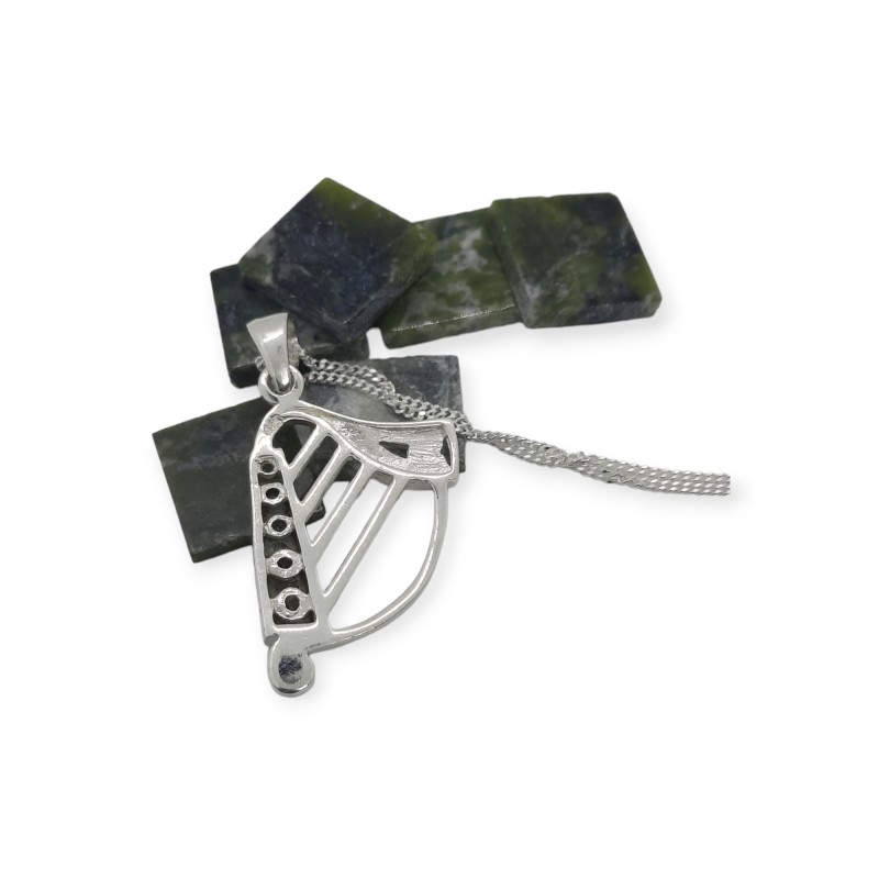 Connemara Marble Harp Pendant made from Sterling Silver.