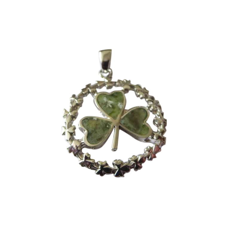 - Product Code: Silver Shamrock Circle Pendant with Connemara Marble - Mount