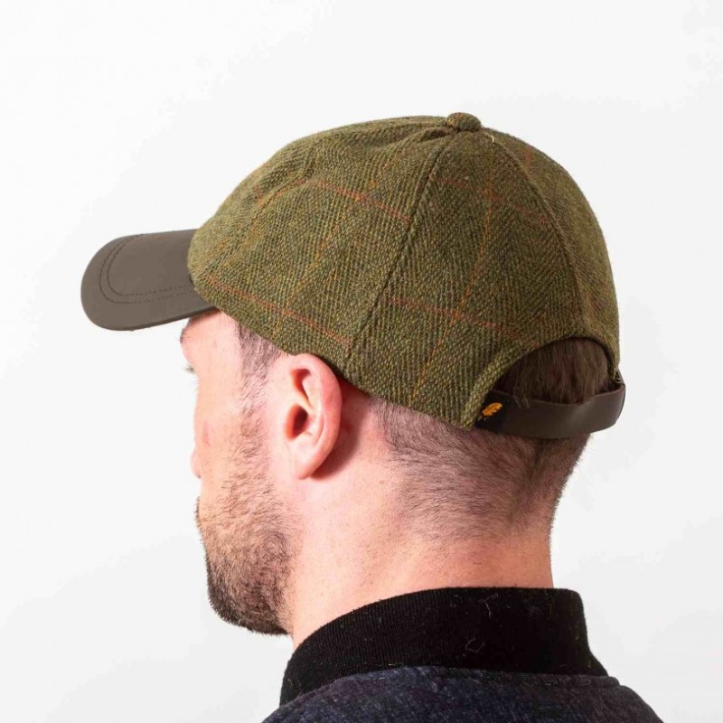 A great Tweed Baseball Cap - Made from a hard wearing wool blend and fitted with natural cotton lining, as a bonus it is Teflon treated for extra protection and easy care. Lovely green tweed with faint red lines.